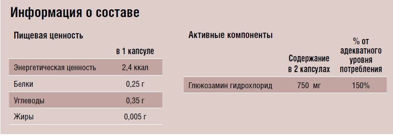 - Содержит оптимальную дозу глюкозамина.