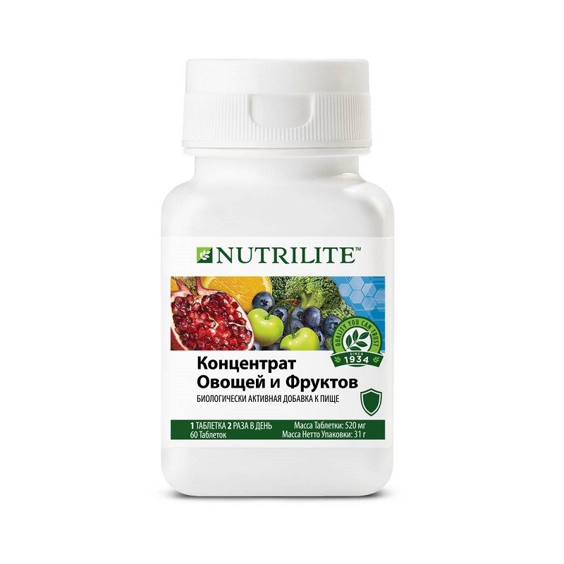 NUTRILITE™ Концентрат овощей и фруктов содержит специально отобранные фитонутриенты из фруктов и овощей. Этот продукт может помочь обеспечить организм важнейшими фитонутриентами для поддержки оптимального здоровья, поскольку является источником натуральных питательных веществ. Он создан как дополнение к ежедневно потребляемым фруктам и овощам, и в его составе представлен широкий спектр питательных веществ растительного происхождения для Вашего рациона. Он также содержит некоторые из наиболее исследованных растительных антиоксидантов.