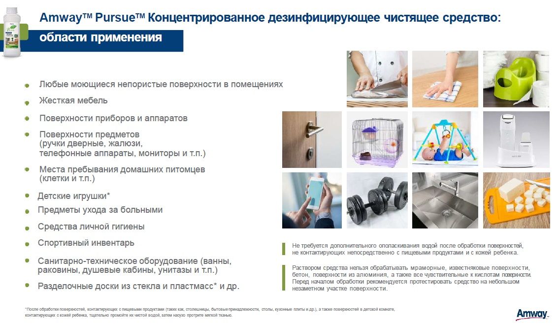 После обработки поверхностей, контактирующих с пищевыми продуктами (таких как, столешницы, бытовые принадлежности, столы, кухонные плиты и др.), а также поверхностей в детской комнате, контактирующих с кожей ребенка, тщательно промойте их чистой водой, затем насухо протрите мягкой тканью. При необходимости повторите процедуру.